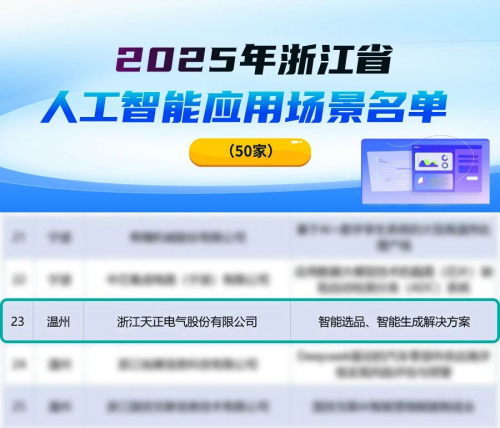 本次评选旨在贯彻落实国家“人工智能+”行动部署,推动人工智能赋能新型工业化与产业深度转型。经自主申报、地市推荐、专家评审等多轮严苛评审程序,最终确定包括天正、等50家人工智能应用场景在内的多项名单。