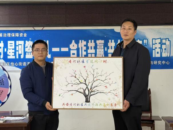 签约仪式上,多支社区社会组织与企业、商家等外部资源方正式签订合作协议,以制度化形式固化合作关系,标志着社区与资源方的合作迈入常态化、规范化发展新阶段。最后,在星河共创环节,参与人员纷纷在“清河社区星筑同心树”上按下手印、将写有对社区未来发展心愿和满载祝福的便利贴装入漂流瓶或贴在共创墙上,寓意着各方携手并肩、同心聚力,共同点亮社区高质量发展的璀璨星河。
